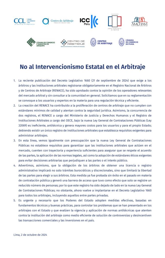 La comunidad arbitral peruana se ha manifestado en contra del Decreto Legislativo que aprobó el Gobierno de Perú en septiembre, y a través del que hace obligatoria la inscripción de…